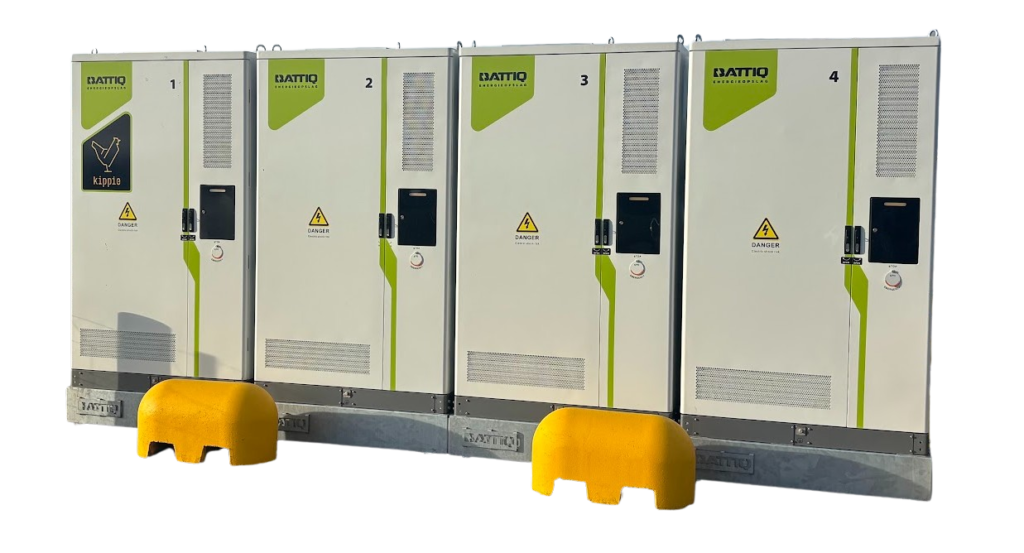 Doordat ze volledig voorbereid op voorraad staan en maar één vrije groep in de verdeelkast nodig hebben, kunnen we deze in enkele dagen opleveren. Het interne klimaatsysteem zorgt ervoor dat de batterijcellen op de juiste temperatuur blijven, ongeacht de weersomstanbdigheden. Met het ingebouwde Co2 blussyteem, voldoet hij op dat punt ook aan de PGS37-1. Geschikt voor peakshaven, noodstroom of energiehandel.